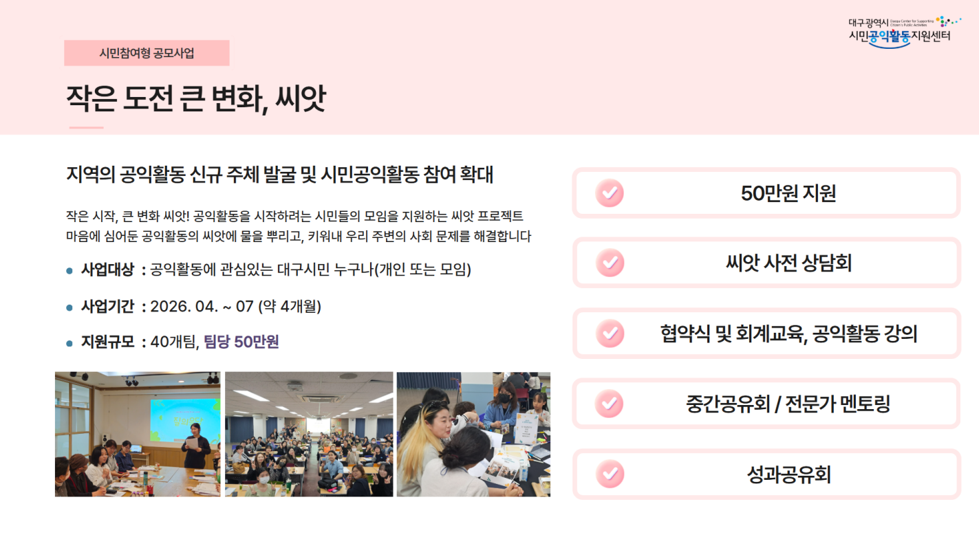 대구시민공익활동지원센터는 단순히 사업을 수행하는 기관이 아니라,