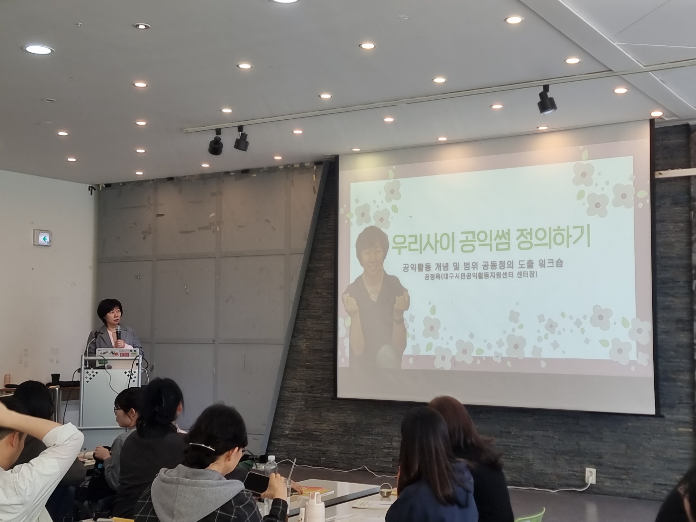 이어진 공익활동 공동정의 도출 워크숍은 대구시민공익활동지원센터 공정옥 센터장님과 함께 진행되었습니다.