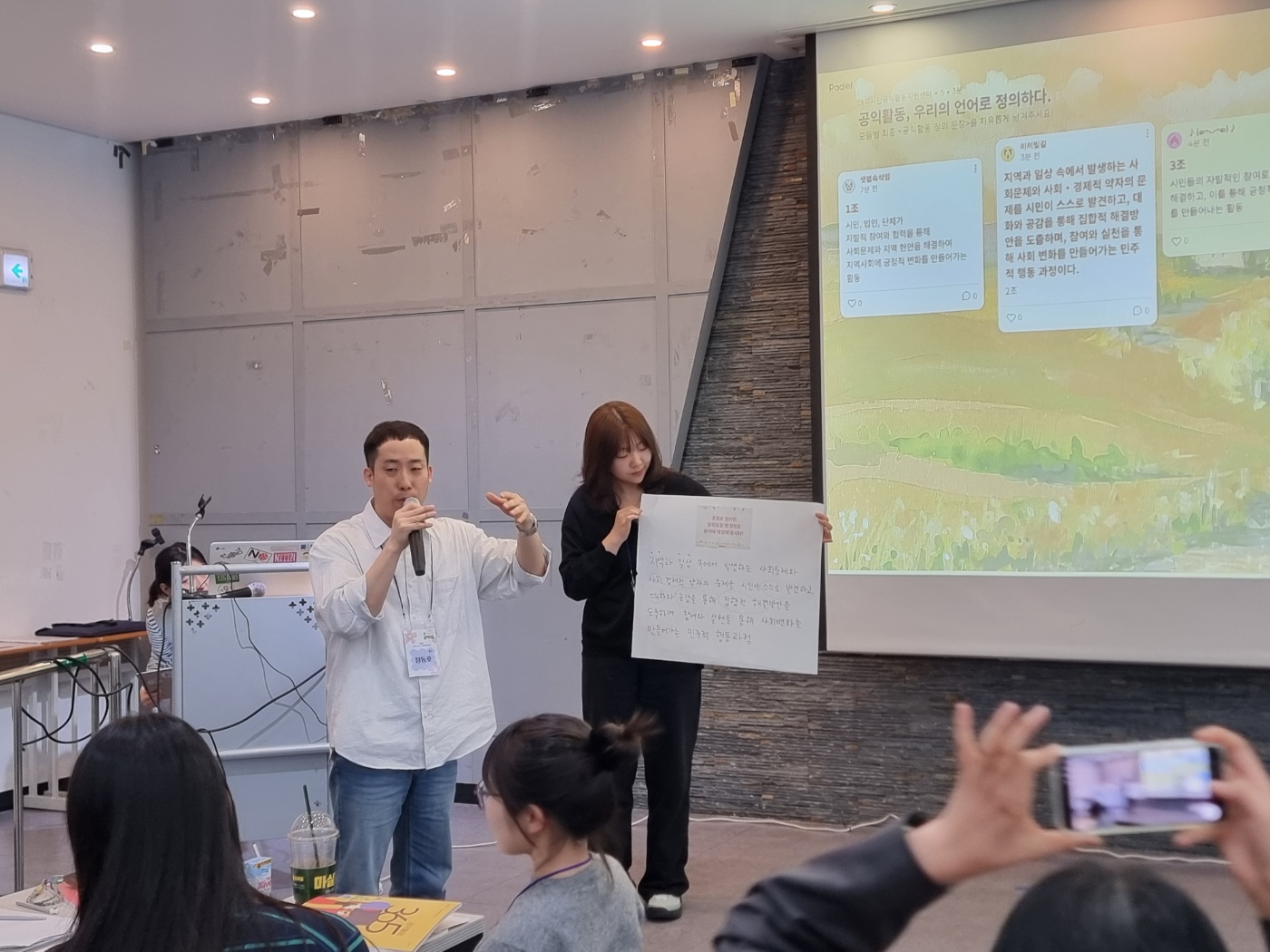 표현은 달랐지만 공통적으로는 시민의 참여와 사회 변화를 만들어가는 과정이라는 점이 드러났습니다.