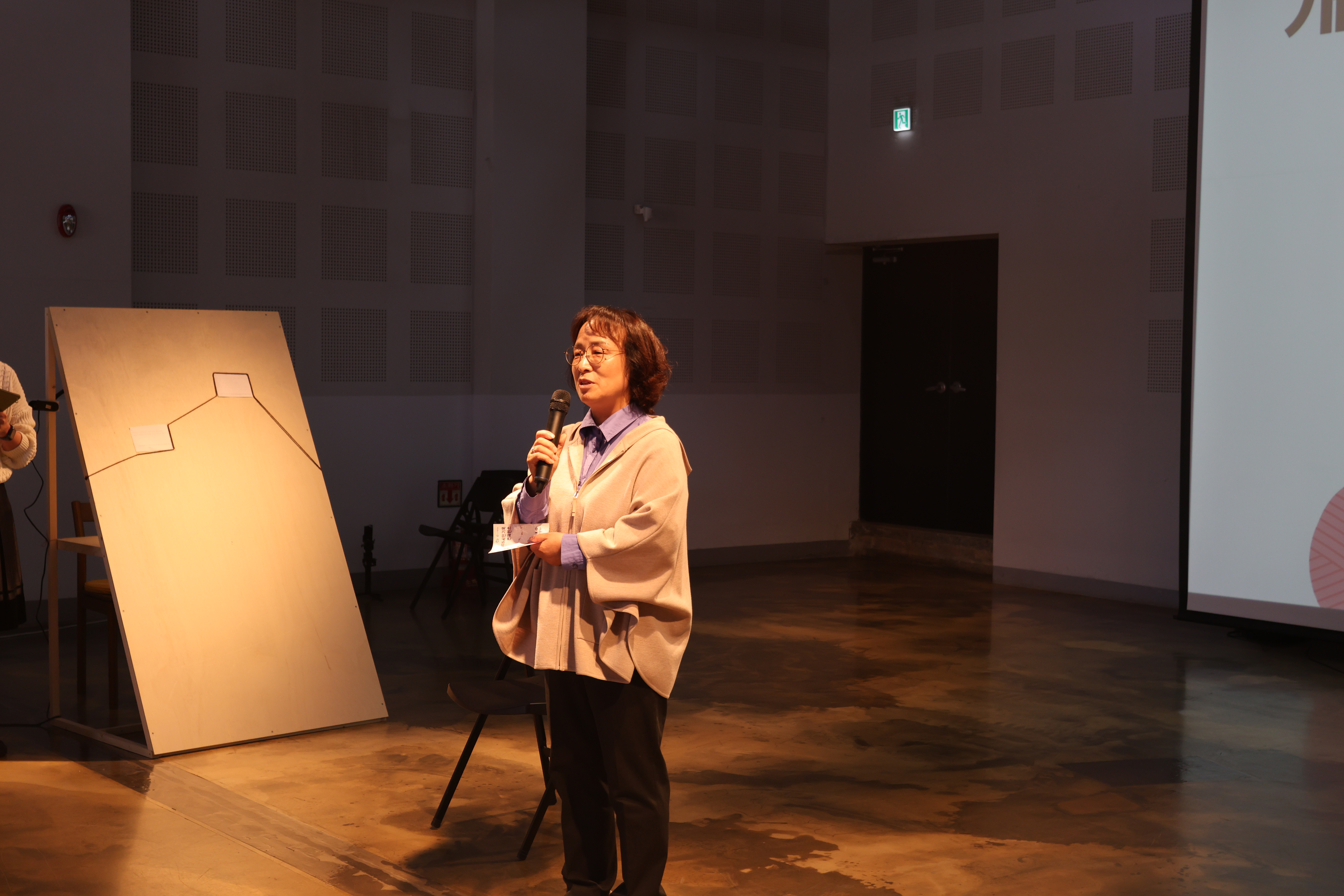 “저희가 여기서 행사를 하자고 결정하면서 에디터들이 이 공간을 어떻게 기획하고 꾸밀지가 참 기대됐습니다. 그런데 어제 미리 와서 보니, 저희가 5기까지 진행되어 오는 과정, 노력, 역량의 성장이 다 담겨 있는 것 같다는 생각이 들었습니다. 실타래라는 말을 들으면 각자 실타래라는 말에서 느끼는 느낌들이 있었을 것 같아요. 우리가 실타래를 깁고 엮고, 잣고 잇기도 하니까요. 이 네 가지 표현들이 그동안 우리 에디터들이 해온 일이 아닐까 하는 생각이 듭니다. 사실은 글을 쓴다는 것이 매우 어려운 부분이에요. 그런데 한편으로는 활동을 기록으로 남긴다는 것이 매우 멋진 일이라고 저는 생각합니다. 그리고 공익활동지원센터가 공익 활동의 다양한 부분들을 기록으로 남기면 그 기록은 현장을 남기는 의미뿐만 아니라, 공익활동 활성화의 계기가 되어주기도 한다고 생각해요.