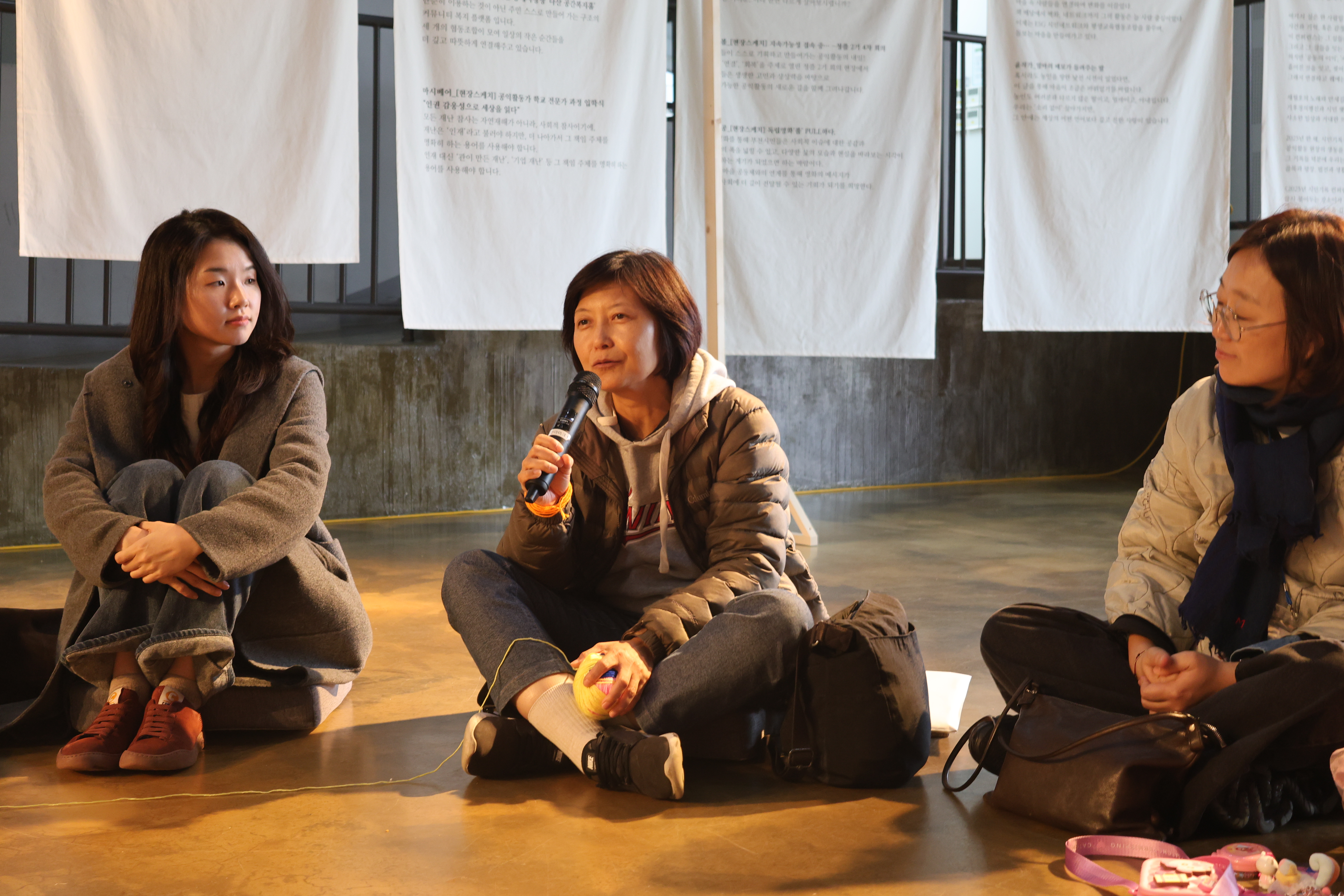함께 토크쇼에 참여한 꿀벌 에디터님의 이야기 중에서는 글쓰기를 ‘침묵에 길들여진 여성’으로서 자신을 깨는 하나의 방식임을 역설한 부분이 가장 인상적이었습니다. 자기 해소 과정으로서의 글쓰기에 관해 들으면서 많은 참가자가 기록과 기록자의 역할에 대해서 다시금 곱씹게 되었답니다.