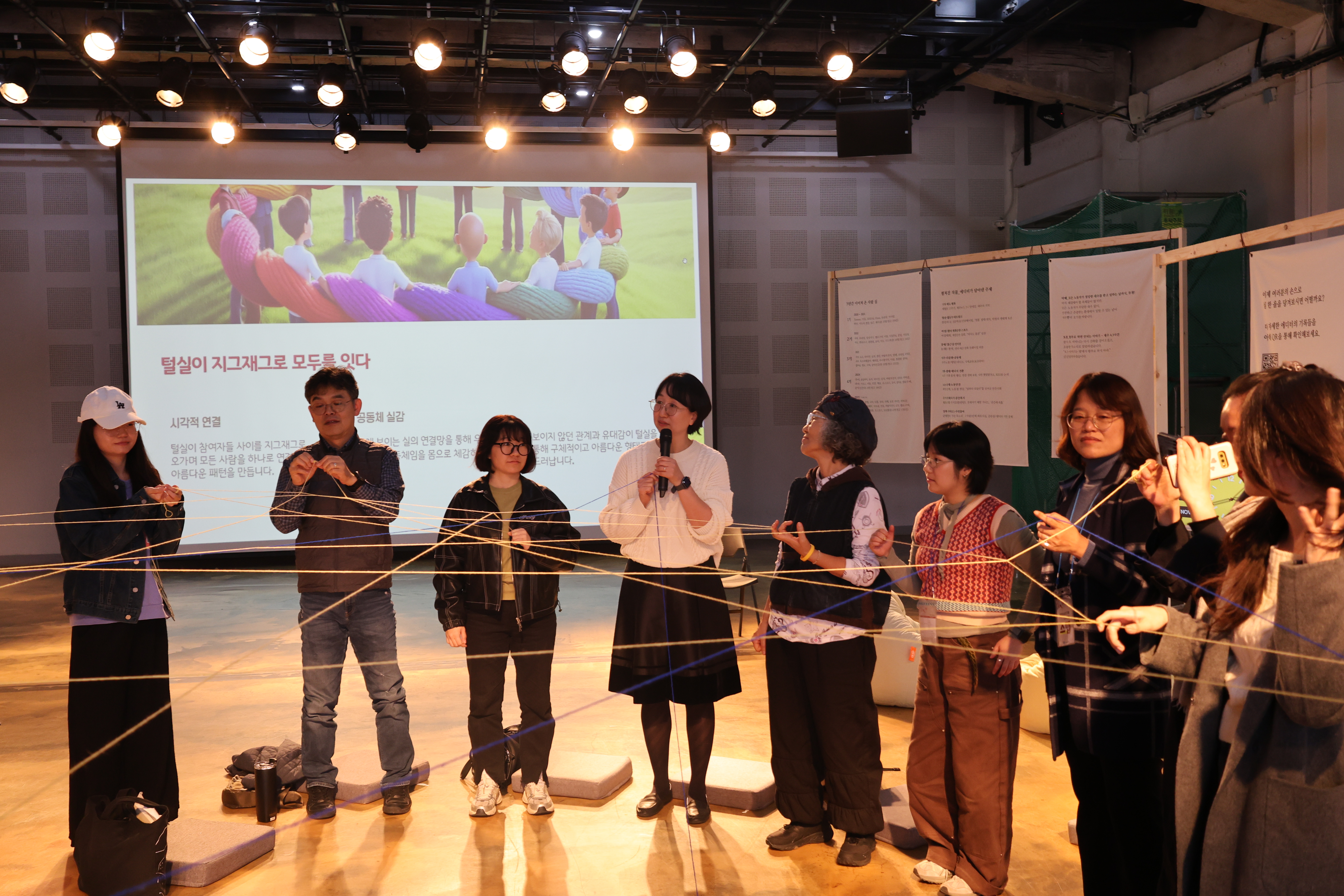 실타래를 옮겨 가면서 참가자들에게 기록에 관한 생각을 들어보고 있는 의미 있는 현장 / 사진출처: 경기도공익활동지원센터
