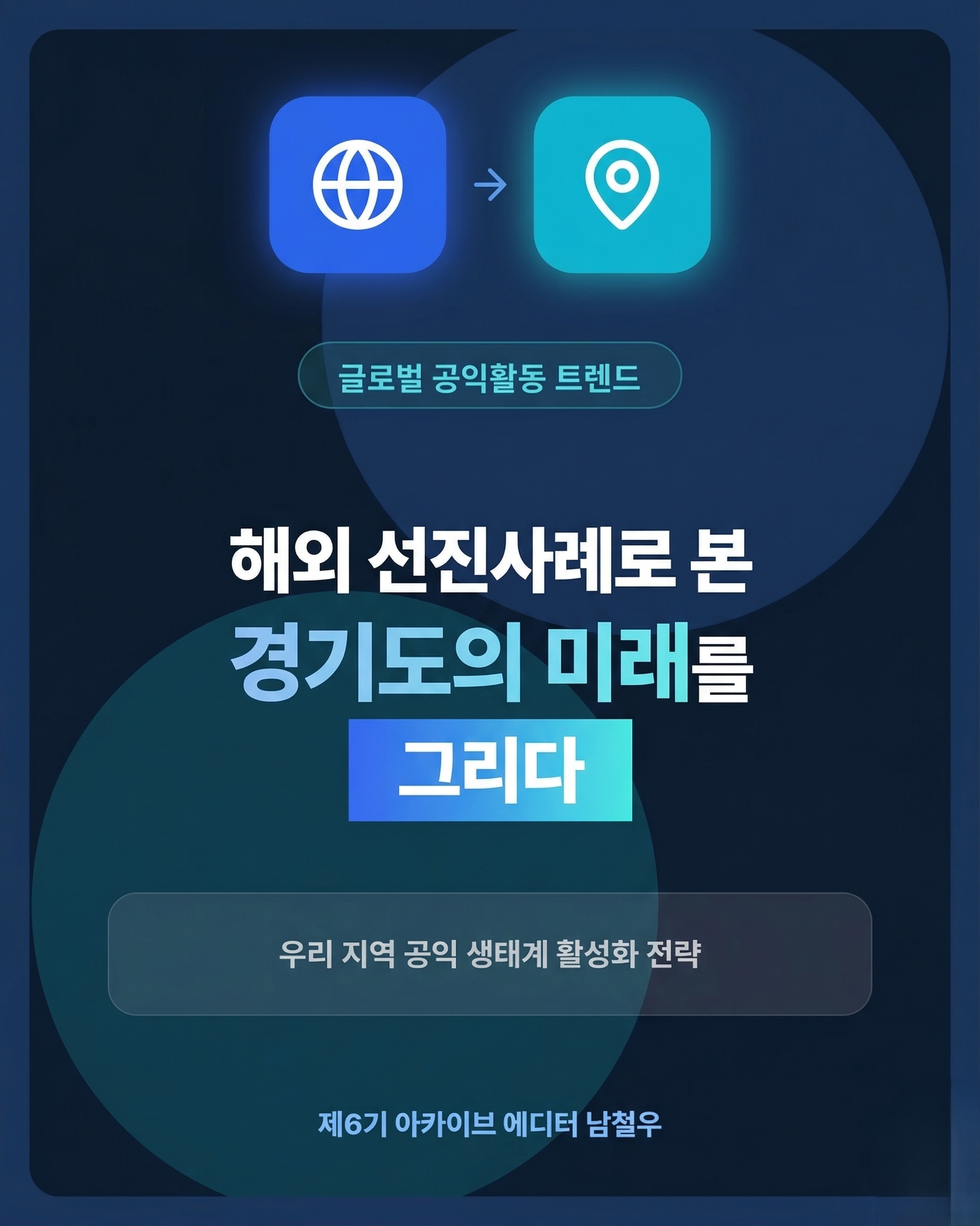 사회적 책임을 다하기 위해, 6기 아카이브 에디터들은 올 한 해 동안 현장의 뜨거운 숨결을 정교하게 기록할 것입니다. 이러한 노력들이 모여 공익활동이 모든 도민의 일상이 되고, 시민의 참여와 지지가 확장되는 생동하는 경기 시민사회를 앞당기는 밑거름이 될 수 있기를 바랍니다.
