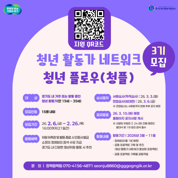 2026년 청년 활동가 네트워크 “청플(청년 플로우)” 3기 모집(~2/26)