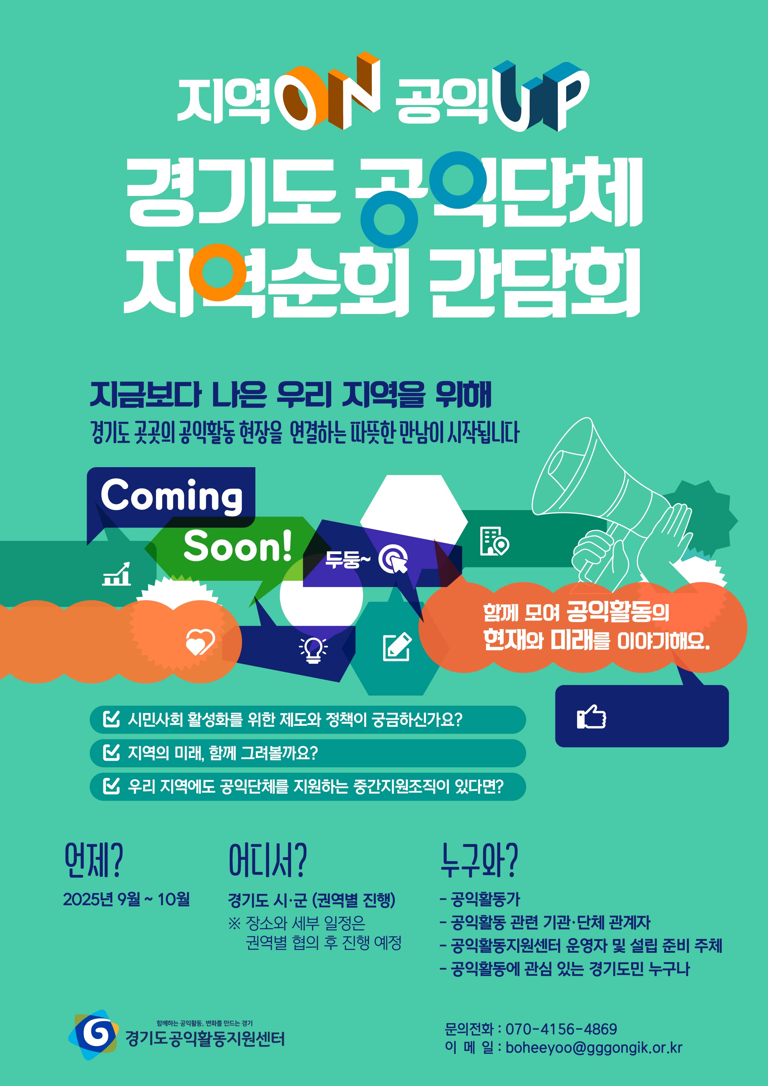 경기도 공익단체 지역순회 간담회 두 번째는 서부권역으로 이어집니다. 많은 관심과 참여를 부탁드립니다.