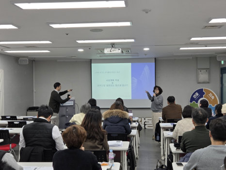 지난 2월 11일(수), 12일(목) 경기 지역 공익활동단체 실무자들이 한자리에 모였습니다. 경기도공익활동지원센터가 운영하는 2026년 공익활동가 학교 특강이 센터(북부) 교육장과 수원지속가능발전협의회 1층 대강의실에서 열렸습니다. 이번 교육에는 총 70여명의 참여자분들이 함께 해주셨답니다.