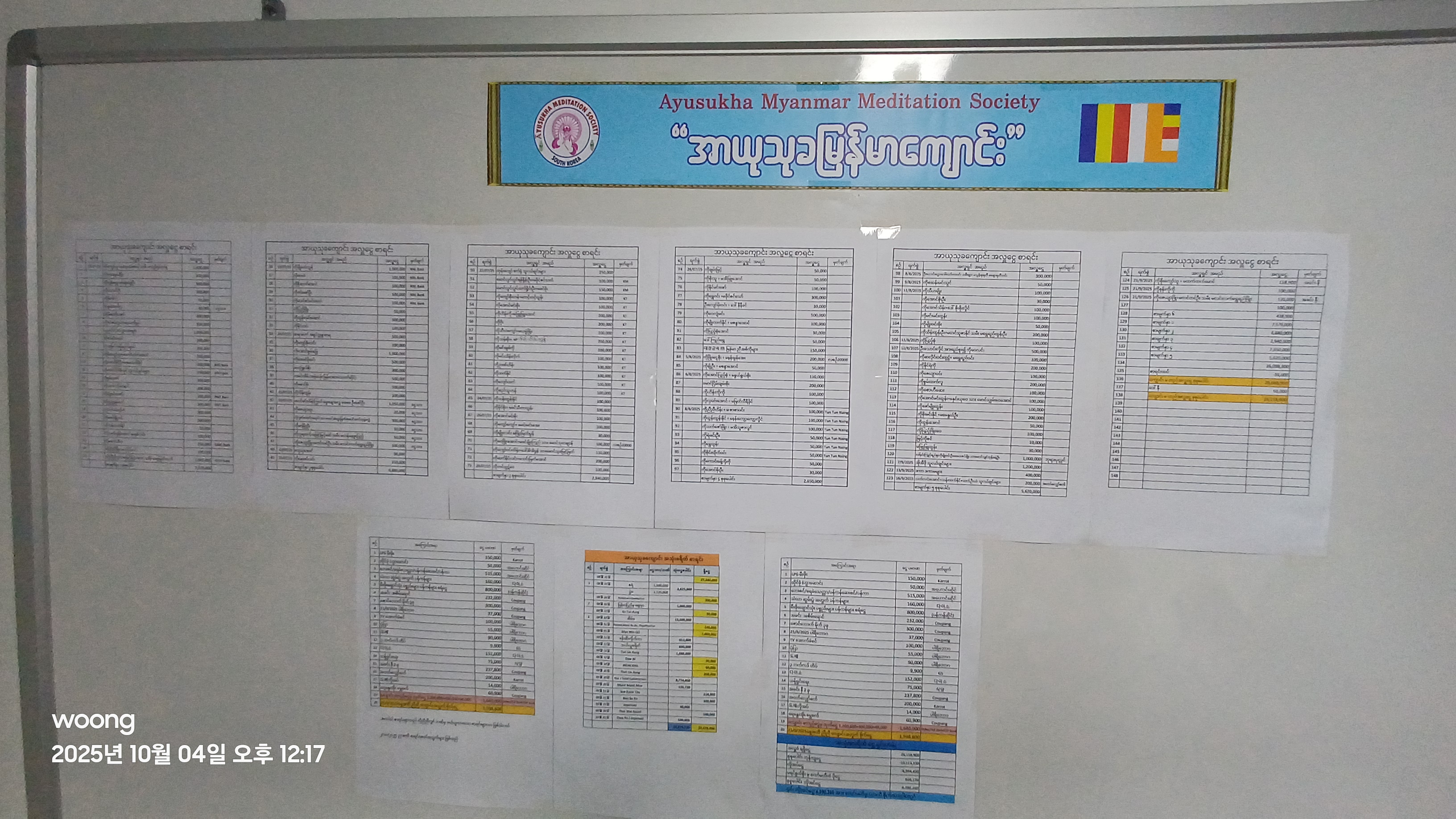 미얀마 법당 건립을 위한 미얀마 신도 300명의 기부자 명단 게시판 / 사진 출처: 에디터 직접 촬영