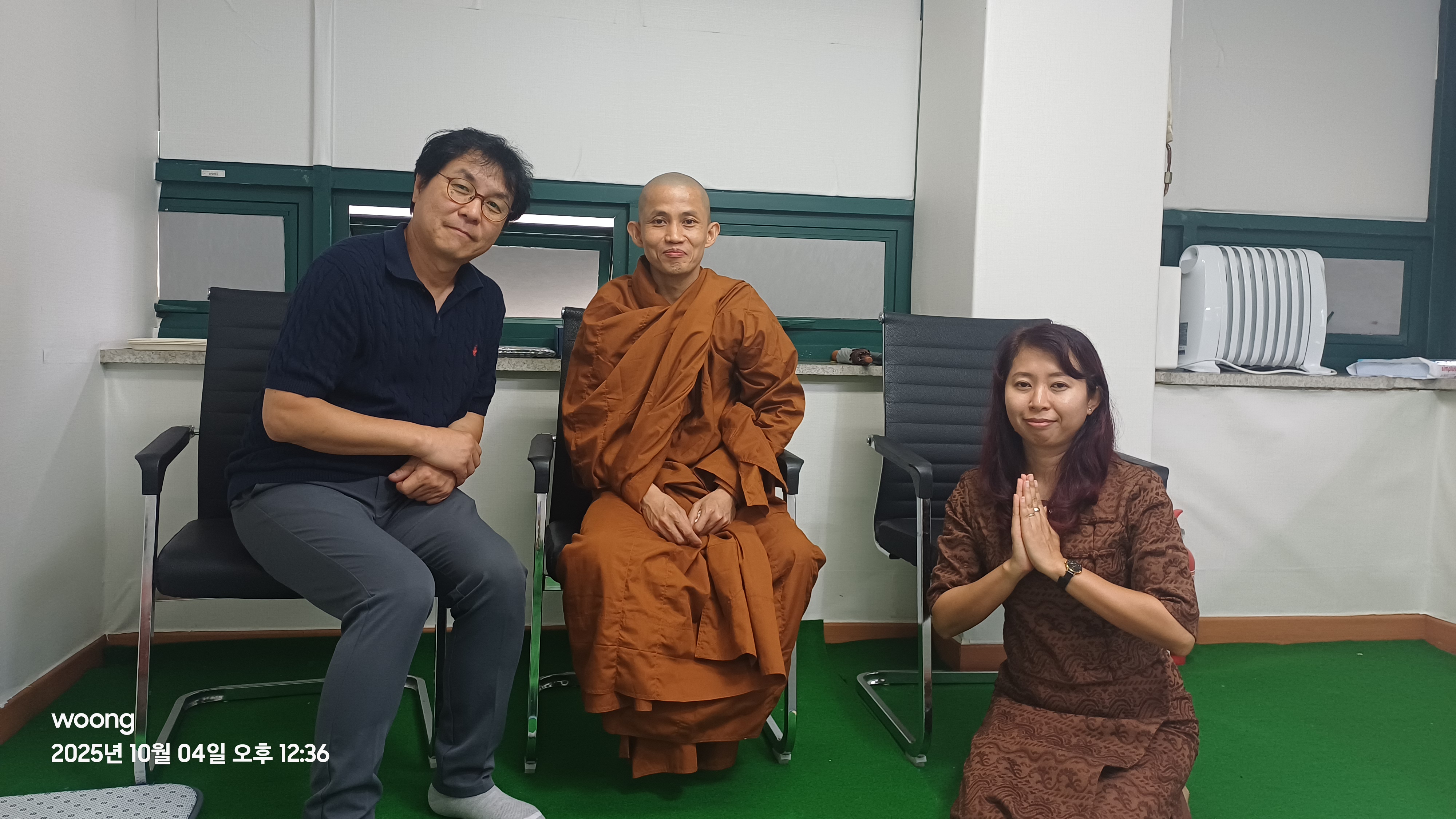 2025년 10월, 시흥 정왕동의 한 법당에서 윤작가 에디터(가장 왼쪽) / 사진 출처: 에디터