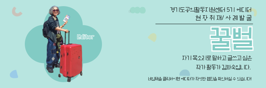 컨퍼런스 홀에서 있었던 공익활동페스타 기념식에서 들었답니다. 여느 공식 행사처럼 국민의례, 내빈소개, 그리고 축사와 공익활동가들에 대한 시상식이 있었는데요. 고영인 부지사가 대독한 김동연 지사의 축사가 인상적이었어요, 경기도가 다양한 공익활동들을 뒷받침하는 ‘사회적 경제의 베이스 캠프’라고 했거든요. 지난 정부가 사회적 재정을 계속 삭감한 거 아시잖아요. 그럴 때 경기도는 도리어 예산을 늘리고 공익활동의 가치를 확산했다네요. 인상적인 한 대목만 옮겨보겠습니다.