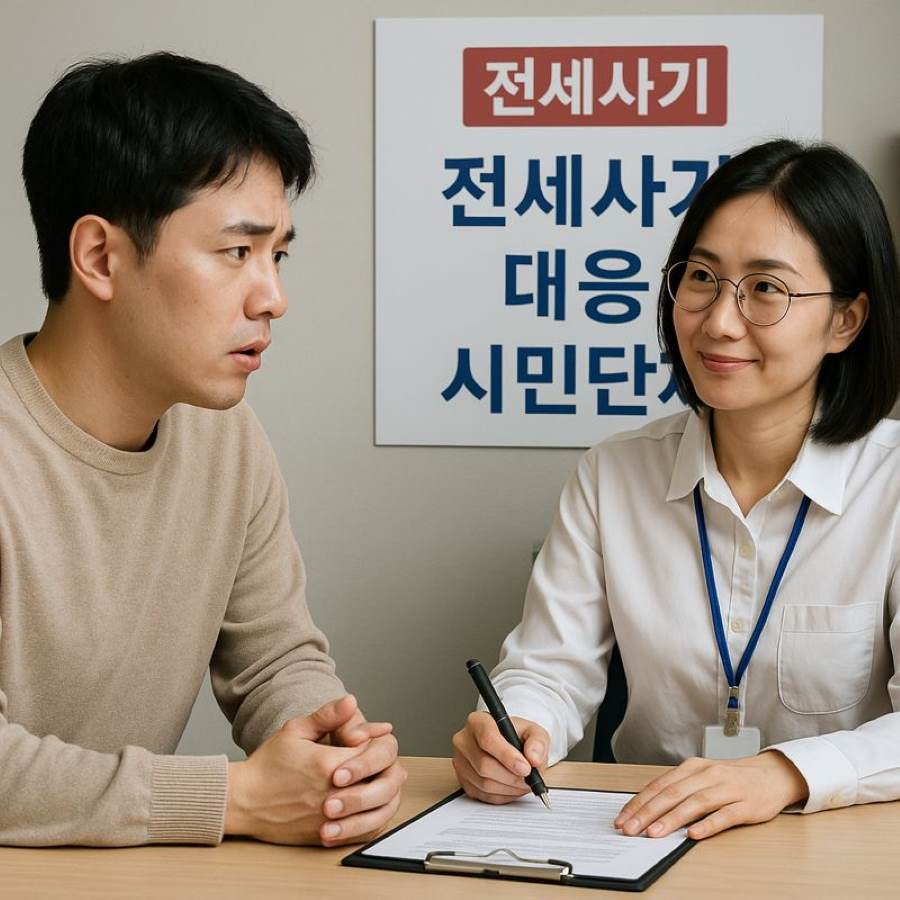 ▶전세 사기 피해자 청년이 시민단체와 대응 방안을 논의하는 모습 / 출처: AI 생성 이미지