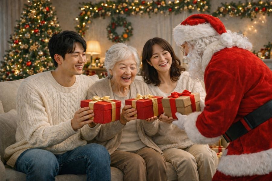 ▶산타가 주는 크리스마스 선물을 받는 1인 청년·노년·중장년의 모습 / 출처: AI 생성 이미지