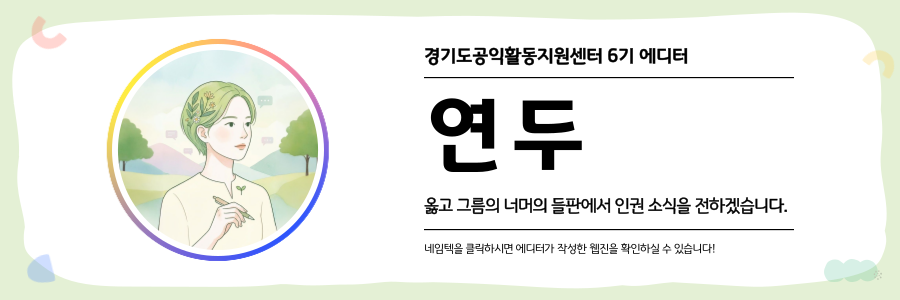 ※ 「공익웹진」은 시민 기록 활성화를 위해 경기도공익활동지원센터가 발행하는 참여형 아카이브입니다. 경기도 공익활동 현장의 다양한 시선과 이야기를 담아냅니다. 글의 내용은 경기도민 에디터가 직접 취재·작성한 것으로, 내용 중 일부 의견은 기관의 공식 입장과 다를 수 있습니다. _편집자의 말