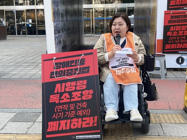 장애인 접근권 보장 기자회견 참여 중 발언 사진제공 조은상