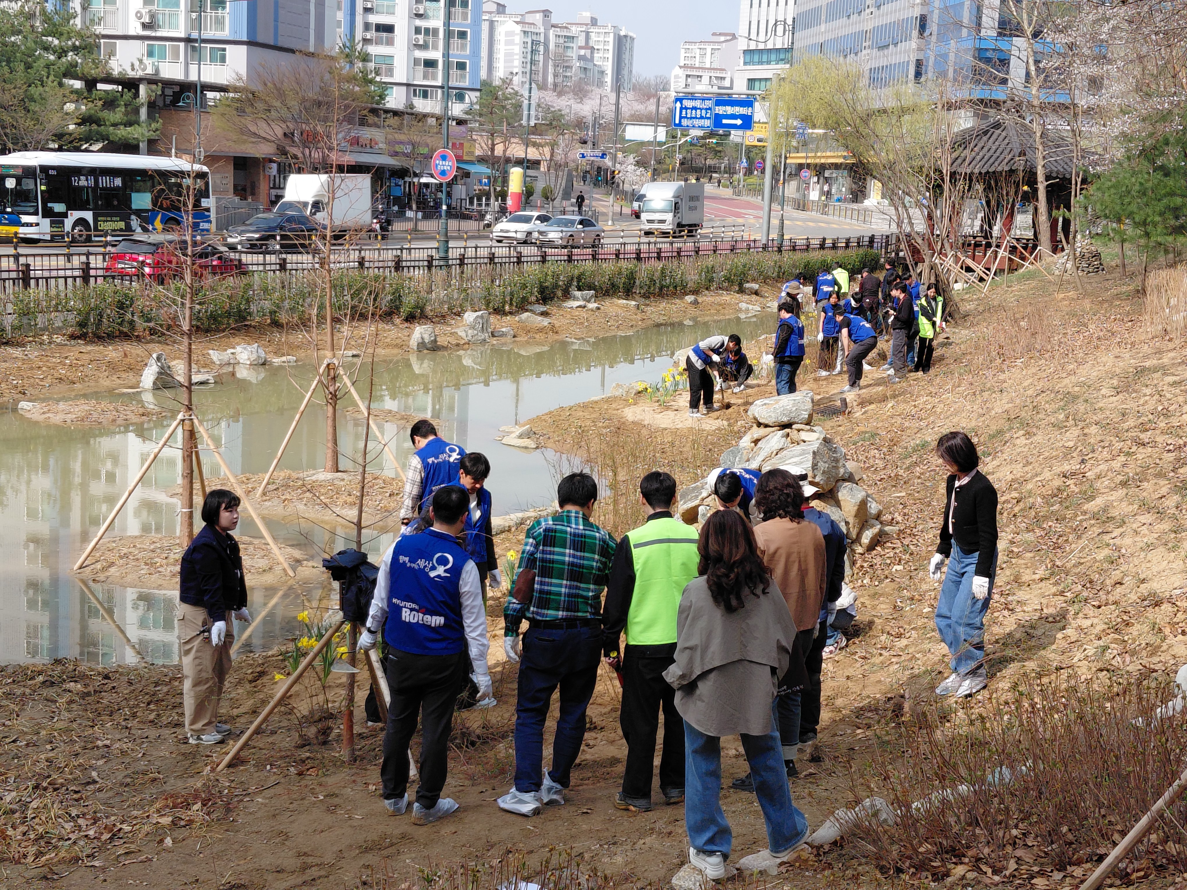 식목일을 맞은 2026년 4월 3일 오후, 의왕시 포일동의 한 습지 일원이 이례적인 활기로 가득찼습니다. 오후 2시부터 4시까지 진행된 이날 행사에는 현대로템㈜, 의왕시청 환경과, 한국환경보전원, 시민환경단체 ‘자연의 벗’ 관계자 분들이 참여했습니다.
