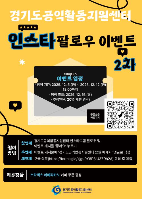 1) 경기도공익활동지원센터 인스타그램 팔로우 및 이벤트 게시물 ‘좋아요’ 누르기