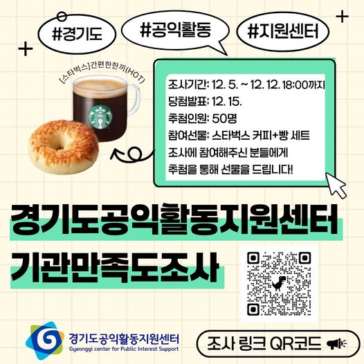 잠시만 시간을 내어 참여해주신다면, 경기도의 공익활동 환경을 더 나은 방향으로 함께 만들어갈 수 있습니다. 여러분의 참여와 응원의 마음을 기다립니다.