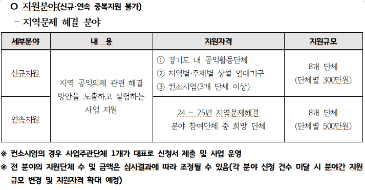 ○ 경기도 소재 공익활동 단체 (※ 지원분야별 세부요건 확인)