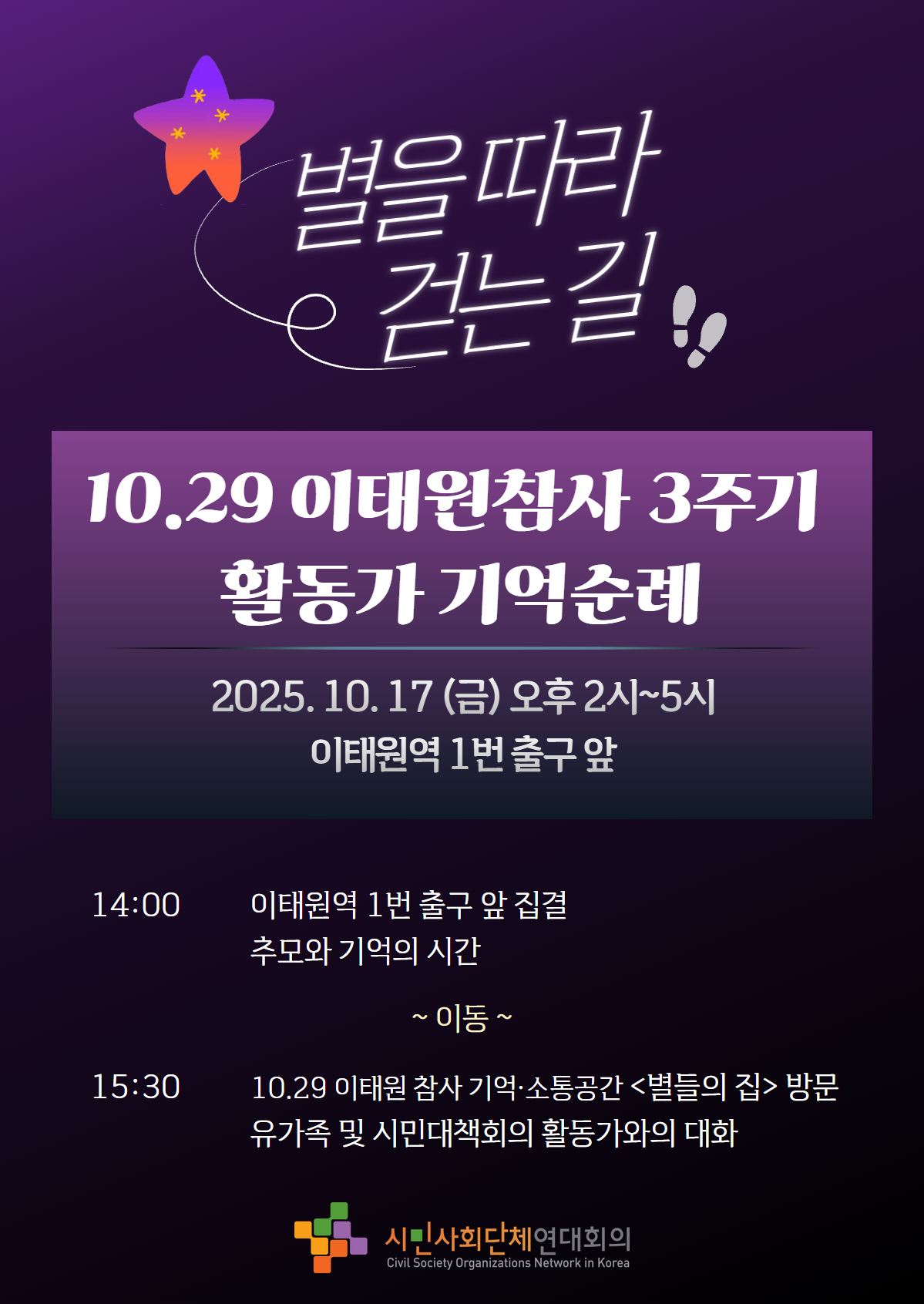 10.29 이태원 참사 3주기 활동가 기억순례 <별을 따라 걷는 길>