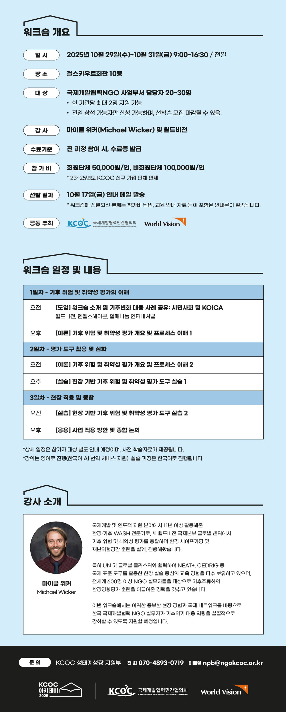- 강사: 마이클 위커(Michael Wicker) 및 월드비전