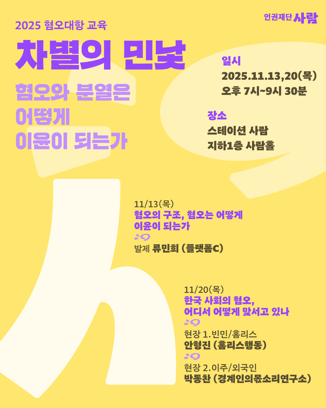 '차별의 민낯’ - 혐오와 분열은 어떻게 이윤이 되는가 (11/13목, 20목)