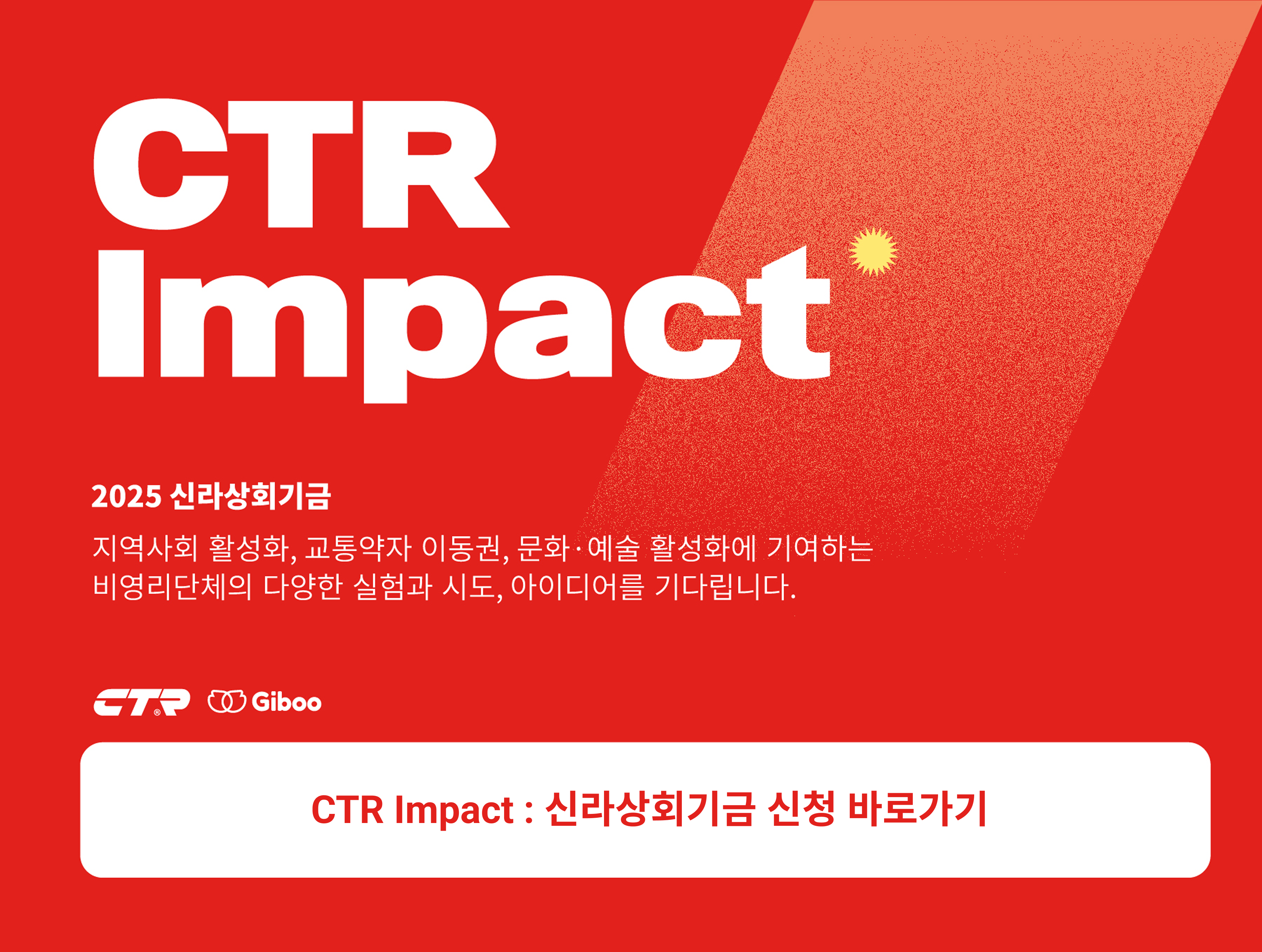 CTR그룹이 'CTR Impact : 신라상회기금' 공모를 통해 단체당 최대 2천만 원을 지원합니다