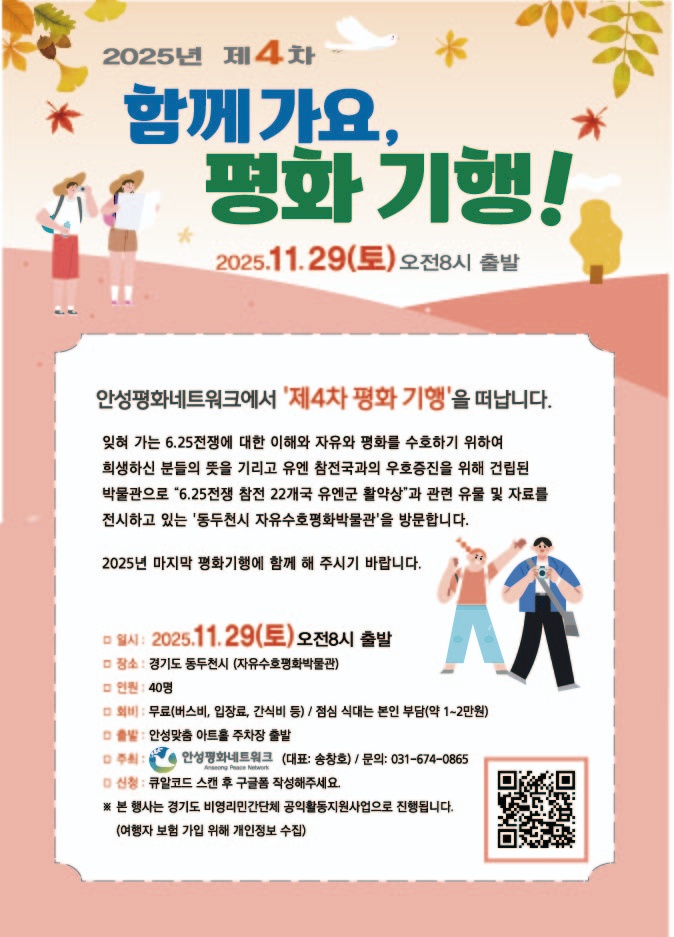 안성평화네트워크에서 2025년 '제4차 평화 기행'을 떠납니다.