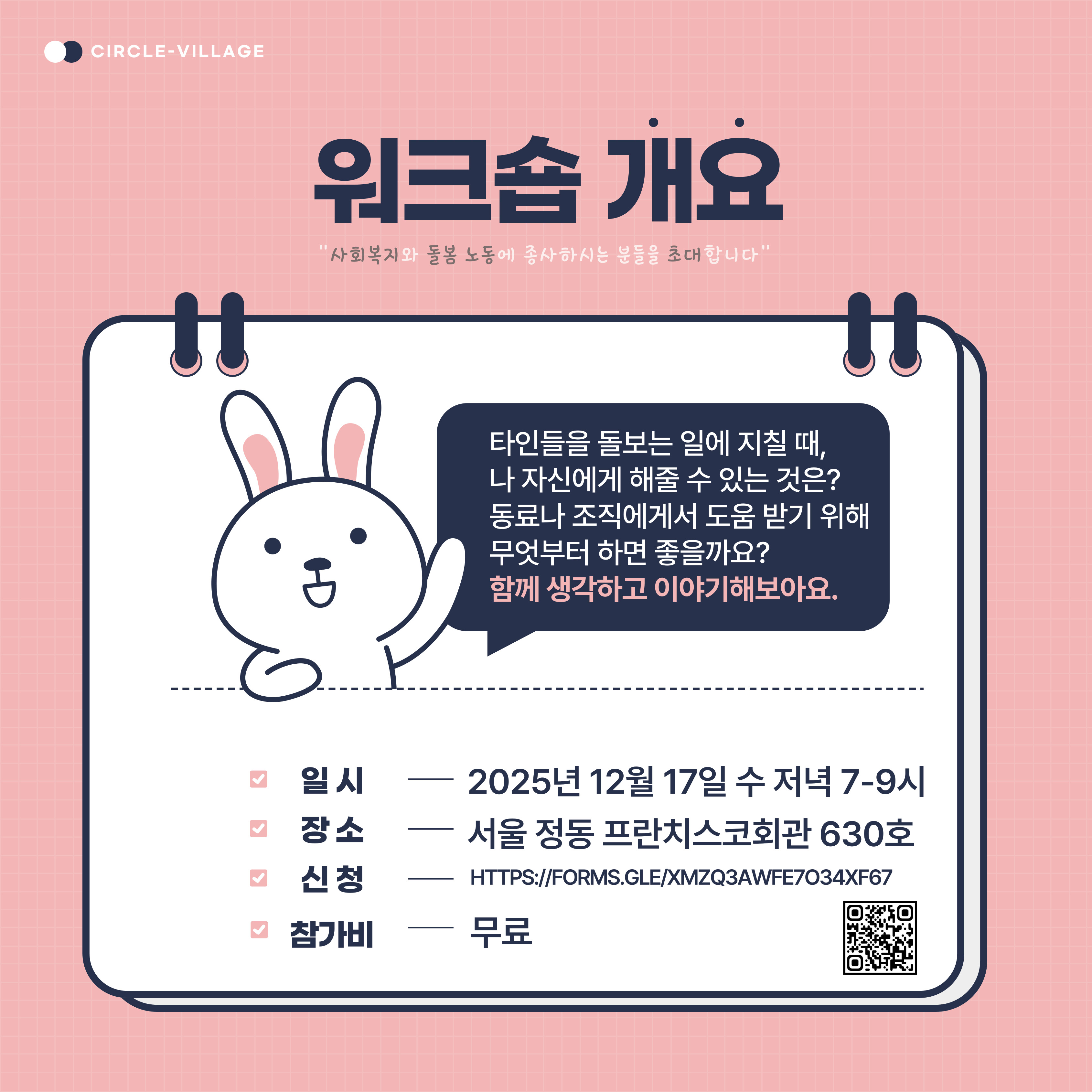 대상 : 사회복지 종사자 및 돌봄 노동자, 돌봄 영역 활동가