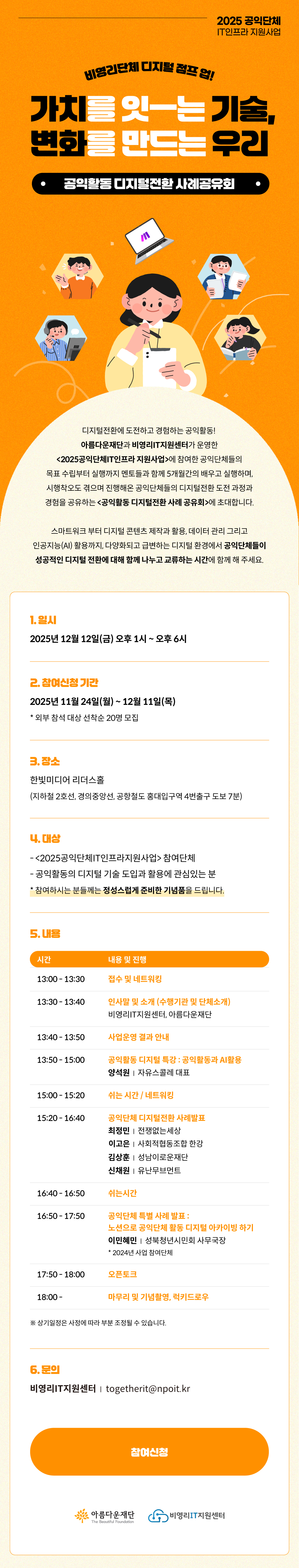 [아름다운재단&비영리IT지원센터] 공익활동 디지털전환 사례 공유회 : 비영리단체 디지털 점프 업! (25.12.12)