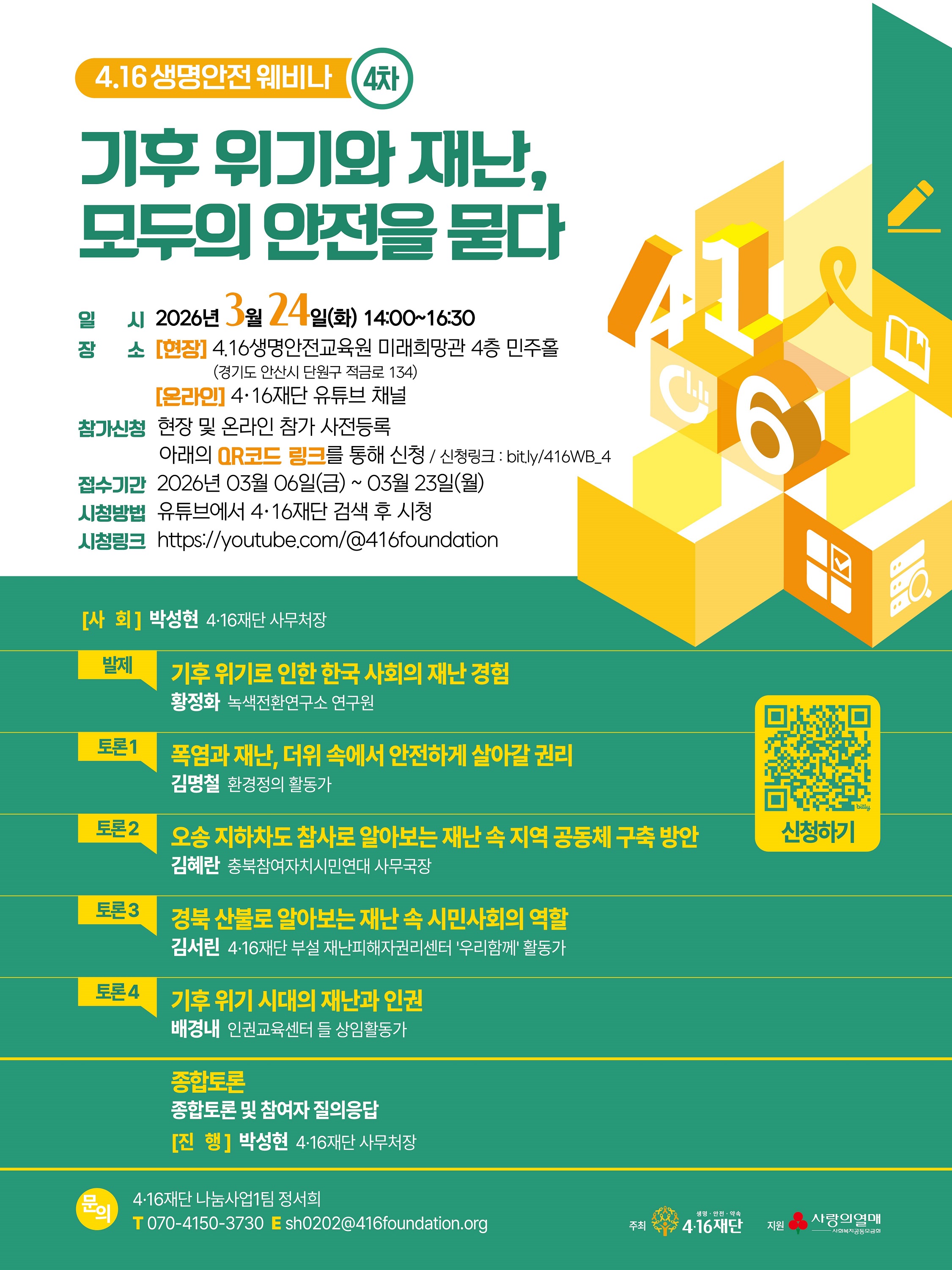 ▷ 신청 방법 : 4·16재단 홈페이지 공지사항 내 웨비나 참석자 등록 링크를 통해 신청