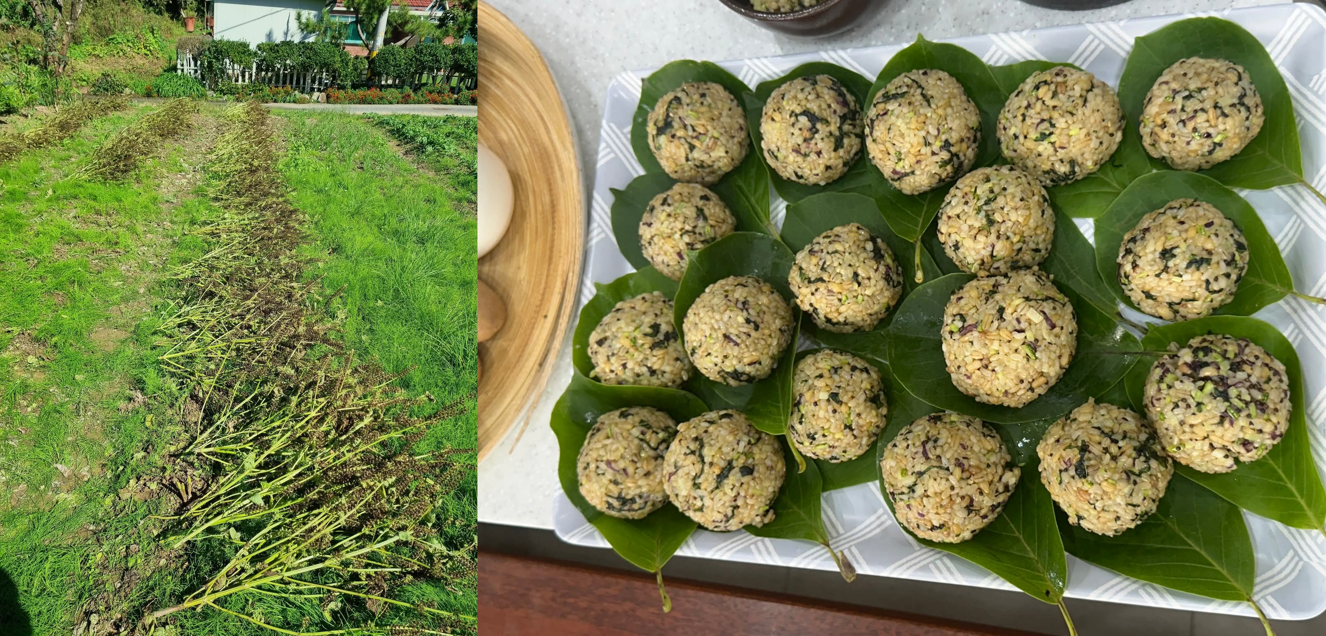 장마 끝에 거둔 상추대궁을 꺾어 만든 상추물김치가 폭 익어 주먹밥과 딱 맞춤이다. 주먹밥을 넣고 씹으면 입안으로 퍼지는 들깨의 고소하고 향긋한 향기가 퍼지고 시원한 물김치가 깔끔하게 마무리해준다. 가을이면 들깨 주먹밥이 기다려지는 이유이다. 그렇게 밭에서 들깨, 팥, 생강, 토란, 쪽파를 거두어 햇가을의 맛을 만나는 재미가 쏠쏠하다.