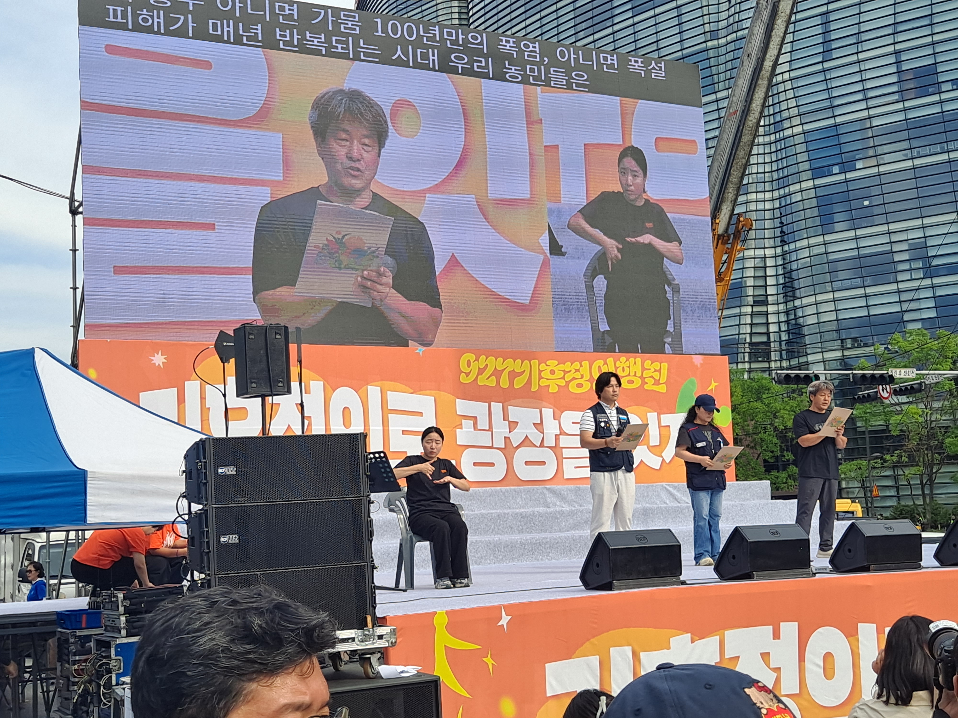 9.27기후정의 행진 포스터와 6대 요구안이 이렇게 많은 다국어로 만들어졌다는군요. 기후 위기와 민주주의 불평등이 연결된 문제이듯 이 땅에 사는 사람들도 언어와 국적을 넘어 서로 연결돼 있으니까요. 9월 27일(토) 12시 반, 동십자각 앞에서부터 시청 앞까지 대로는 다양한 부스와 사전 대회 장소로 열렸습니다. 청년, 노동자, 농민이 기후정의에 목소리를 보탰고, 650단체 3만여 명이 함께 행진했습니다.