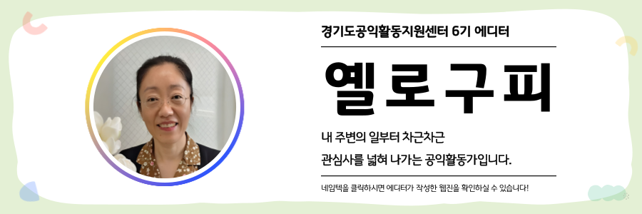 ※ 「공익웹진」은 시민 기록 활성화를 위해 경기도공익활동지원센터가 발행하는 참여형 아카이브입니다. 경기도 공익활동 현장의 다양한 시선과 이야기를 담아냅니다. 글의 내용은 경기도민 에디터가 직접 취재·작성한 것으로, 내용 중 일부 의견은 기관의 공식 입장과 다를 수 있습니다. _편집자의 말