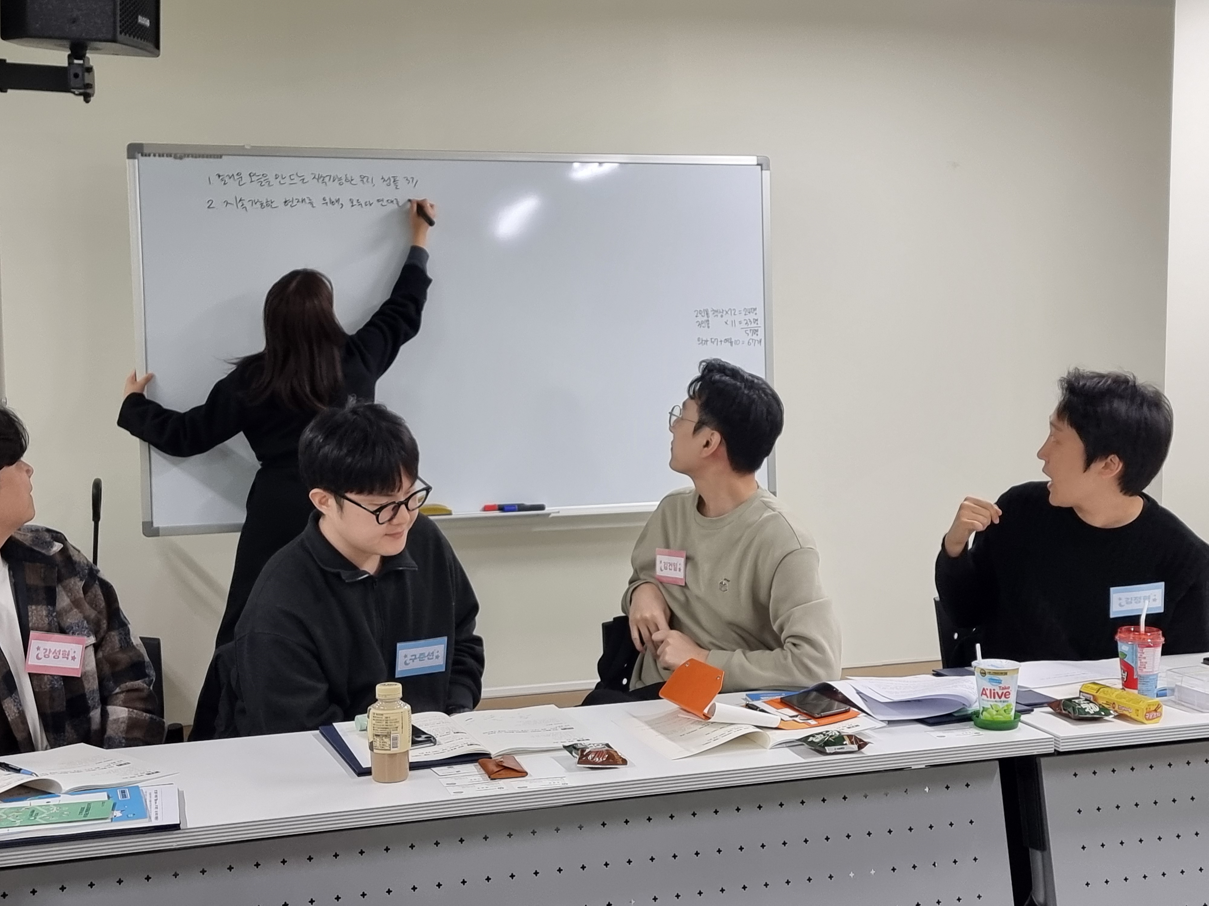 슬로건을 정하기 위해 회의를 진행하는 모습