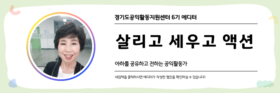 ※ 「공익웹진」은 시민 기록 활성화를 위해 경기도공익활동지원센터가 발행하는 참여형 아카이브입니다. 경기도 공익활동 현장의 다양한 시선과 이야기를 담아냅니다. 글의 내용은 경기도민 에디터가 직접 취재·작성한 것으로, 내용 중 일부 의견은 기관의 공식 입장과 다를 수 있습니다. _편집자의 말