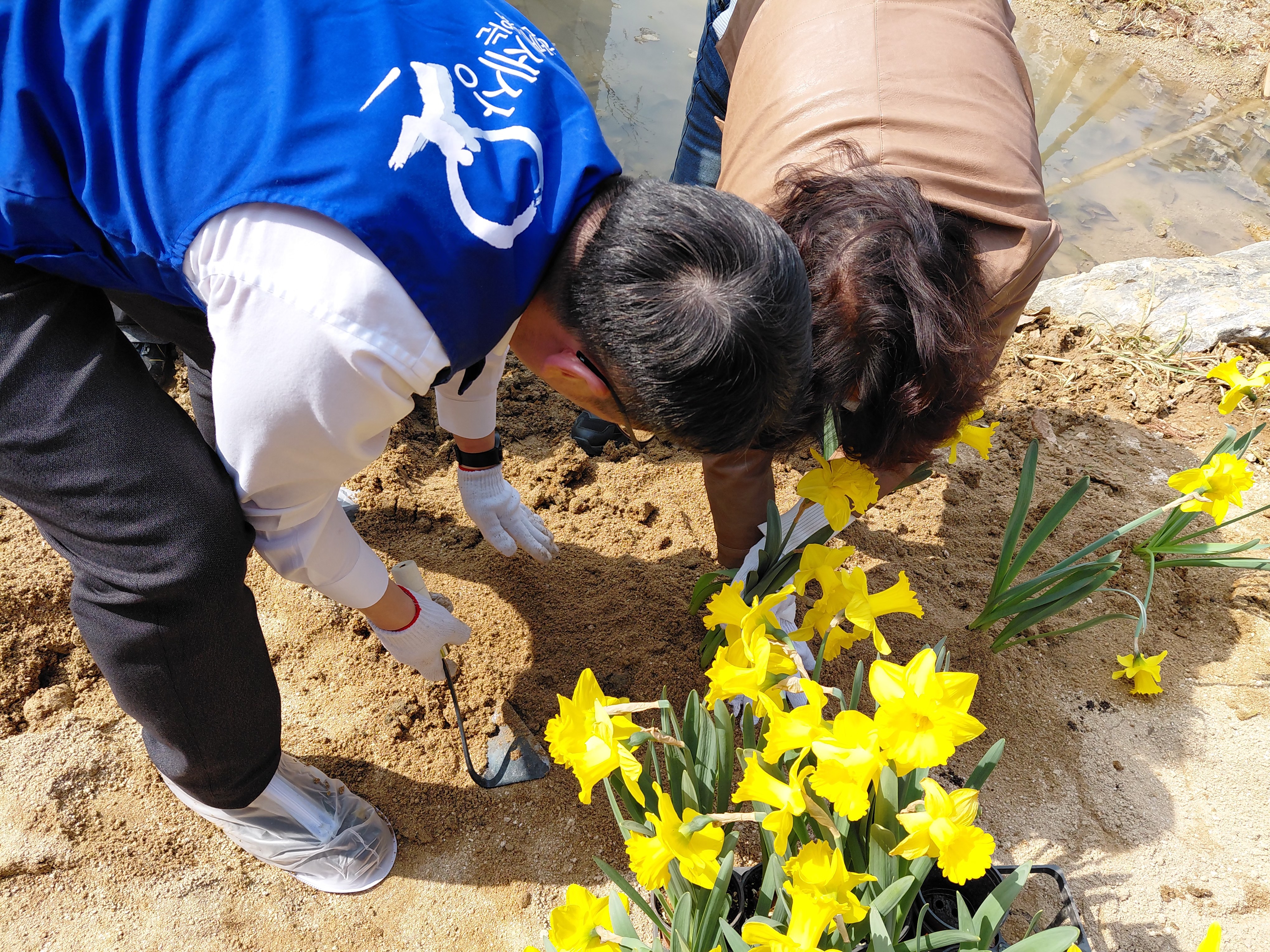 이날 행사에는 본격적인 식목에 앞서 진행된 ‘에코플로깅’ 활동은 참여자들에게 환경 보호의 의미를 몸소 체험하게 했습니다. 습지 주변 곳곳에 방치된 폐기물을 수거하는 과정에서 참가자들은 자연 회복의 시작이 ‘정화’ 라는걸 몸으로 알게 됩니다. 참여자들은 이후 직접 삽을 들고 나무를 심고, 흙을 고르고, 묘목의 뿌리를 안정적으로 자리 잡게 한 뒤, 다시 단단히 다지는 과정을 반복하며 생태 복원의 중요성을 체감했습니다.