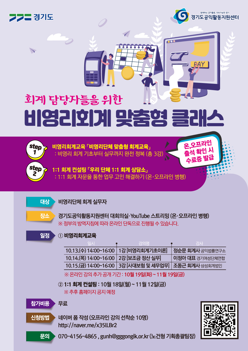 비영리회계 실무에 어려움을 겪고 있는 비영리단체와 활동가에게 회계교육과 컨설팅 지원