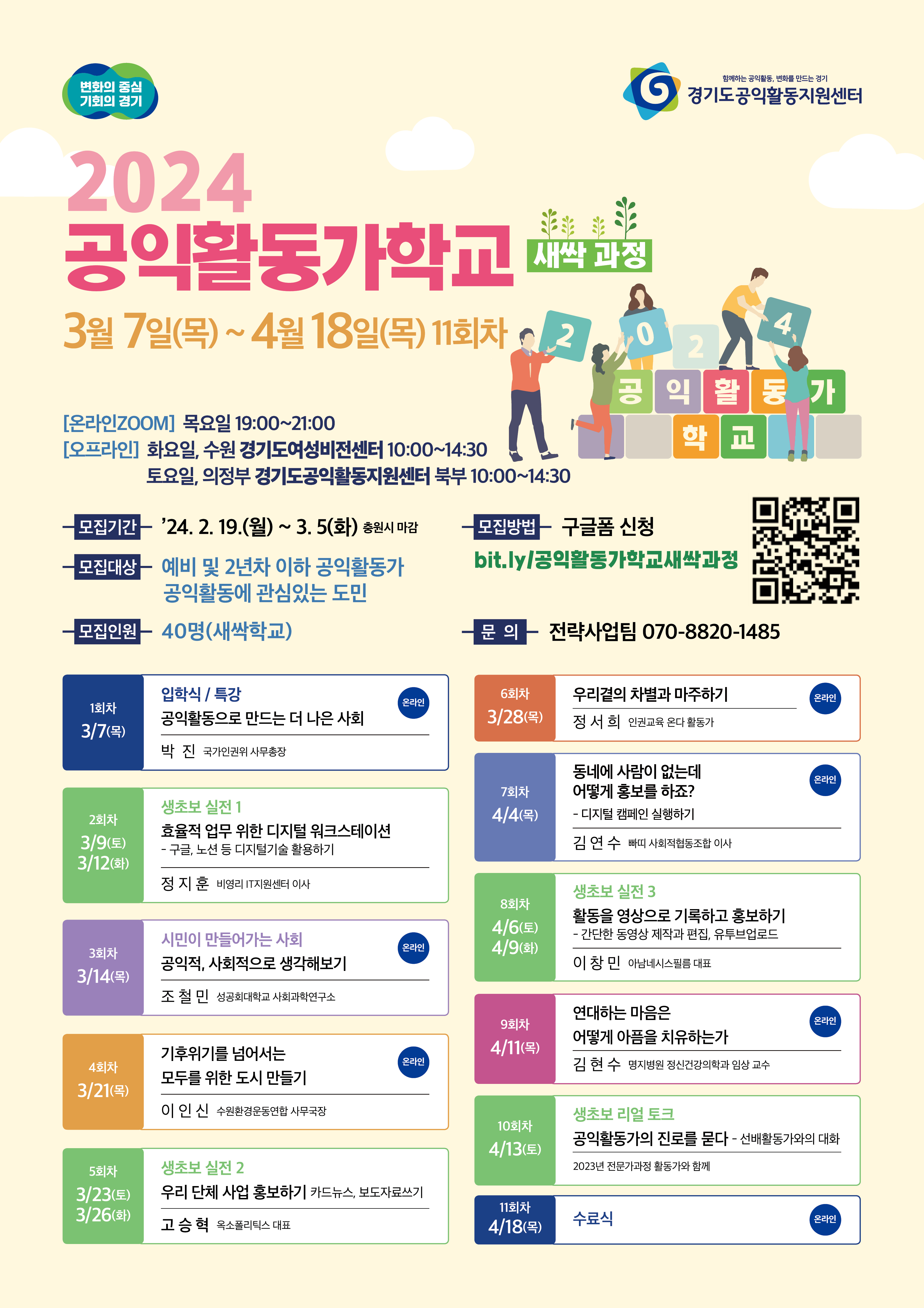 - 공익활동가 학교 : 경기지역 신규 활동가 및 다년차 활동가, 공익활동에 관심있는 경기도민, 유관기관 실무자 등
