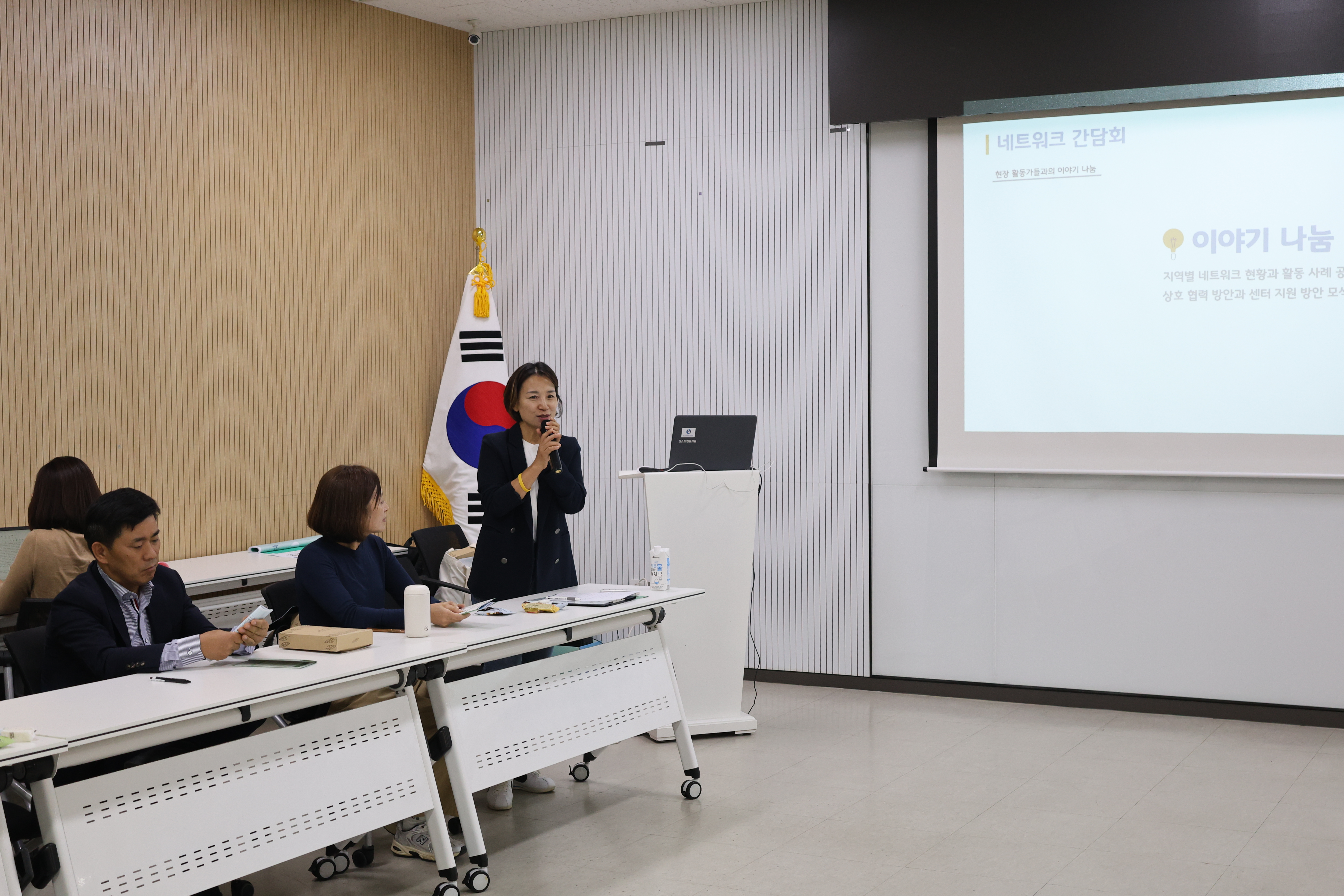 서진숙 사무국장은 “첫 번째 순서가 동부권역이라 더욱 의미 있다”라며 "오늘 이 자리가 지역 특성에 맞는 과제와 지원 방안을 함께 고민하는 출발점이 되길 바란다”라는 말과 함께 박수로 간담회의 문을 열었습니다.