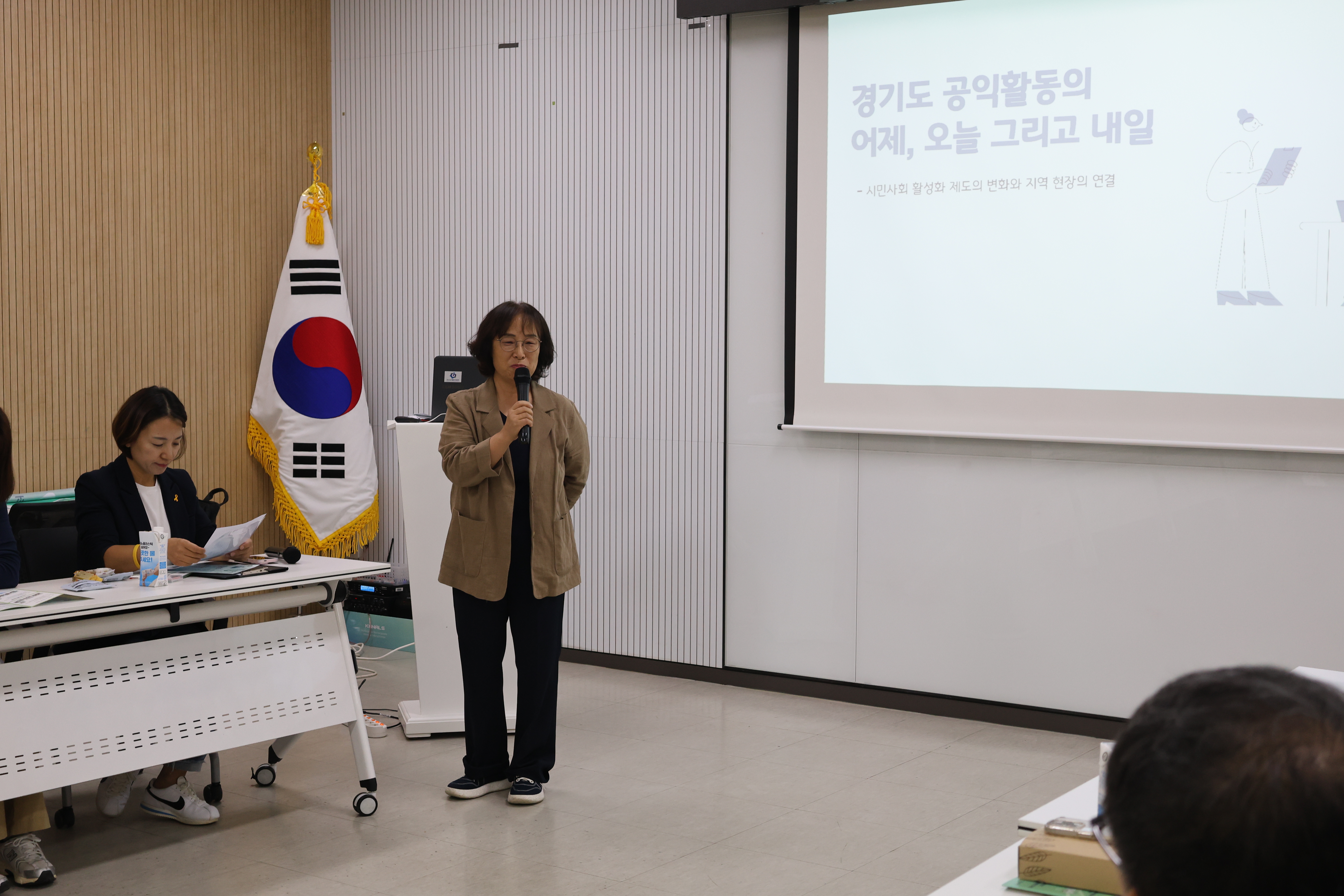 이어 한국 시민사회의 제도 변화와 정책적 흐름, 시민사회 6대 규제 법률 개정 과제, 경기도 내 공익활동지원센터 설립과 조례 제정 현황 등을 짚으며, 경기도공익활동지원센터의 2026년 비전과 핵심 과제를 공유했습니다.