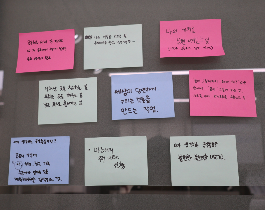 '어떤 가치를 찾아 이곳에 왔는지' 잊게 될 때가 있잖아요.
