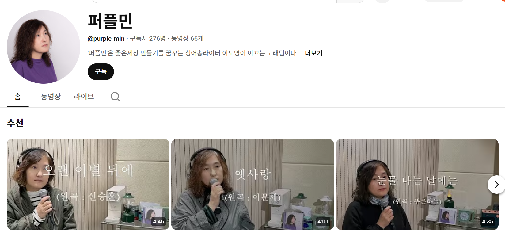 퍼플민 앨범 및 유튜브 계정 / 출처: 퍼플민