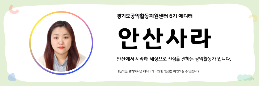 ※ 「공익웹진」은 시민 기록 활성화를 위해 경기도공익활동지원센터가 발행하는 참여형 아카이브입니다. 경기도 공익활동 현장의 다양한 시선과 이야기를 담아냅니다. 글의 내용은 경기도민 에디터가 직접 취재·작성한 것으로, 내용 중 일부 의견은 기관의 공식 입장과 다를 수 있습니다. _편집자의 말