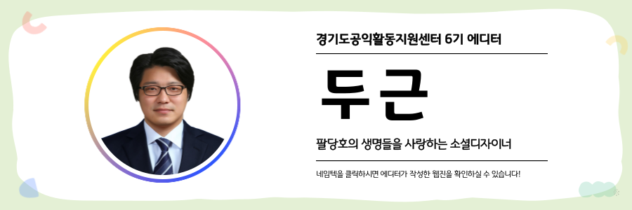 ※ 「공익웹진」은 시민 기록 활성화를 위해 경기도공익활동지원센터가 발행하는 참여형 아카이브입니다. 경기도 공익활동 현장의 다양한 시선과 이야기를 담아냅니다. 글의 내용은 경기도민 에디터가 직접 취재·작성한 것으로, 내용 중 일부 의견은 기관의 공식 입장과 다를 수 있습니다. _편집자의 말