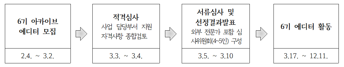 - 1~5기 아카이브 에디터 활동인증 수료자(*기존 에디터 지원 시 본인작성 웹진자료로 ‘자유양식 기사’ 대체가능)
