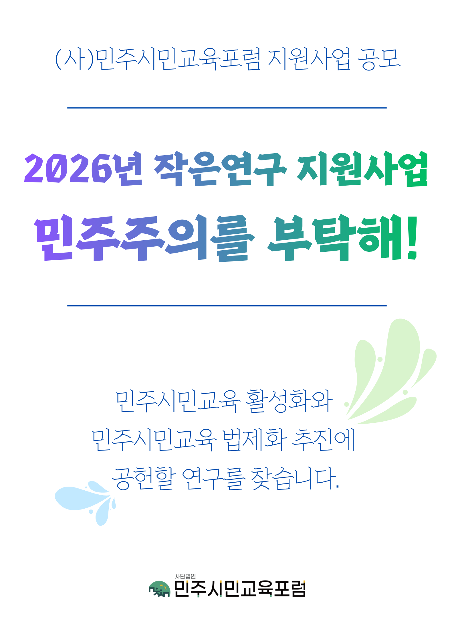 ※ 신청서식 : (사)민주시민교육포럼 2026년 작은연구 지원사업 신청서(하단 첨부파일 참고)